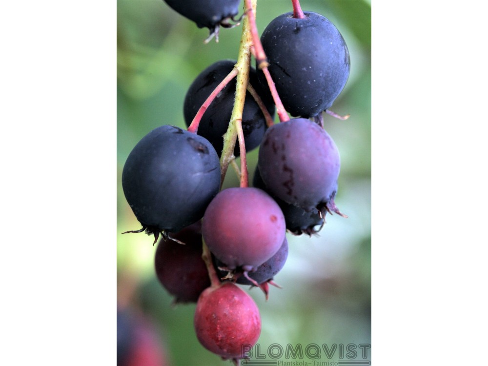 Populär rikbärande, härdig kanadensisksort. Riklig vit blomning efterföljs av massor med blåsvarta, goda, sötsyrliga bär, lika nyttiga som blåbär. Sorten har bland de största saskatoon bären och skördarna. Bären mognar under kort tid och passar utmärkt till bl.a. gelé, sås, saft och sylt. Kan klippas för att förenkla skördearbetet. Ger relativt lite rotskott. Busken kallas även för Blåbärsträd och är Kanadas `vinbär´.