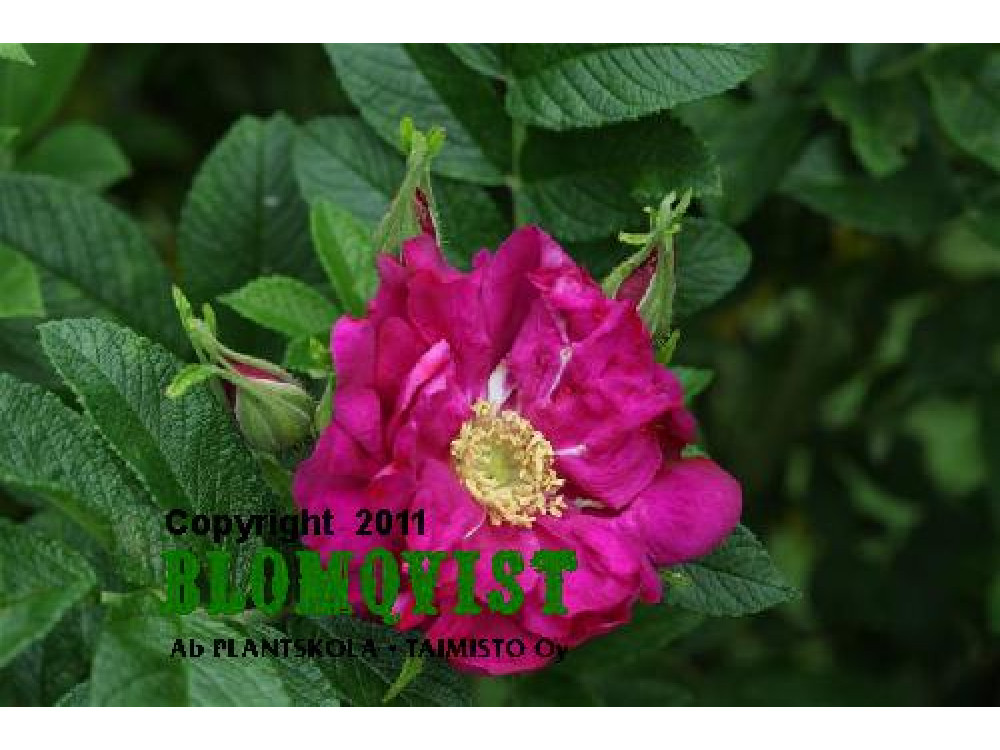 Rödrosa blom i juli-augusti som efterföljs av nypon.