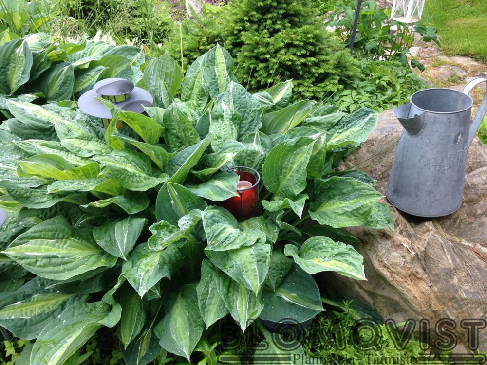 Vackert trefärgade blad. Gulaktiga blad med blågrå kant.